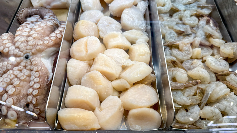 Scallops are a delicacy prized for their sweet, delicate flavor and buttery texture. But they don't come cheap; harvesting scallops is labor-intensive, and their short shelf life adds to the cost. If you're on the hunt for high-quality seafood, Whole Foods is a go-to. Whole Foods helps ensure you're getting your money's worth by sourcing sustainably and offering dry-packed scallops, which haven't been treated with water-retaining chemicals, giving you pure, unadulterated seafood. While they come with a hefty price tag of $34.99 per pound, you can rest easy knowing that you're getting a quality product.