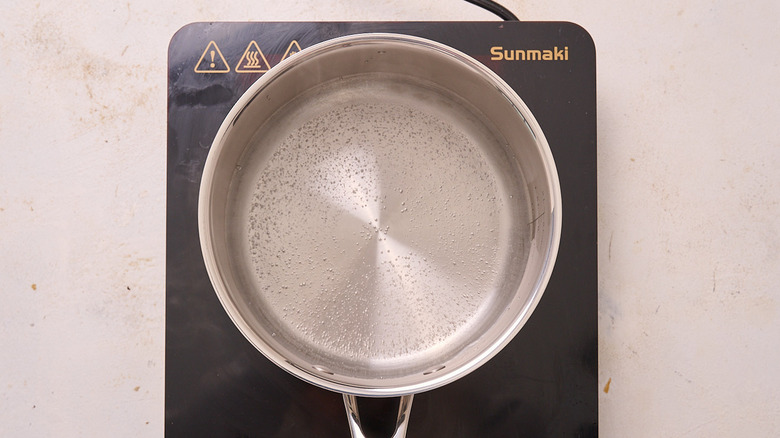 - Fill a small saucepan with 2 inches of water and bring it to a simmer over medium heat.