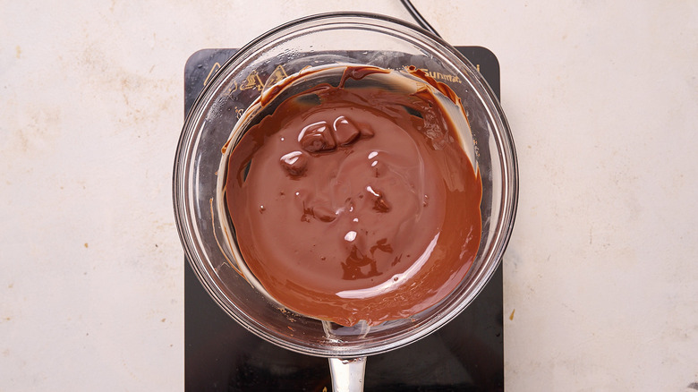 - Place the chocolate in a heat-proof bowl and set it over the saucepan. Allow it to melt, stirring occasionally.