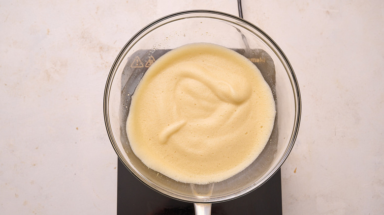 - Whisking constantly, heat the egg mixture until pale, smooth, and creamy, about 2 minutes. Remove from the heat.