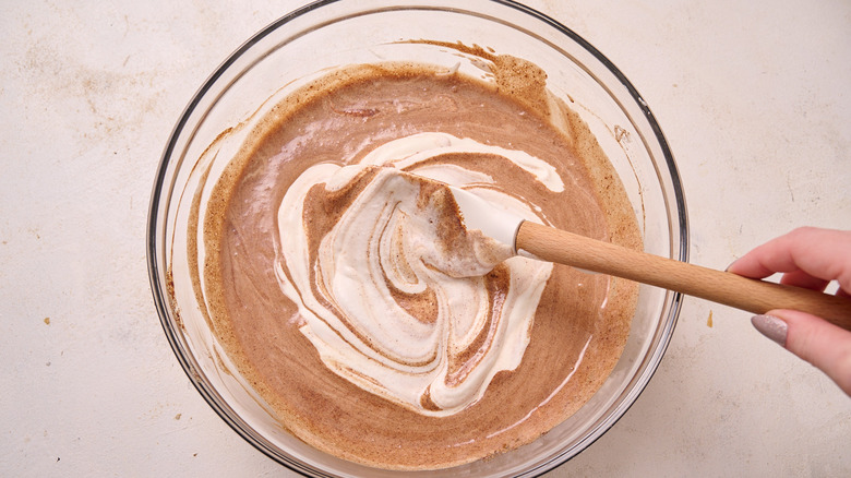 - Reserve 1 cup of whipped cream, then gently fold the remaining whipped cream into the chocolate mixture 1 spoonful at a time.