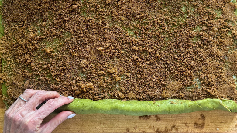 - Roll the dough into a tight log 18 inches long and place in the fridge for 30 minutes so it's easier to cut.