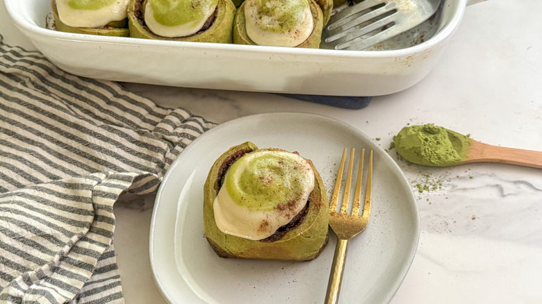 Level up your cream cheese-glazed cinnamon buns with the addition of matcha powder, which adds a subtle earthy flavor and turns them a stunning shade of green.