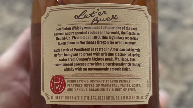 While the specific proportions of different grains used to make Pendleton Whisky are unknown, there are a handful of details available to share. For instance, once it's distilled, the whisky is placed in American oak barrels to age. Then again, the length of time it ages isn't specified, and the actual location in Canada where it's produced is unclear – two more pieces of proprietary information the distillery seemingly withholds from the public.