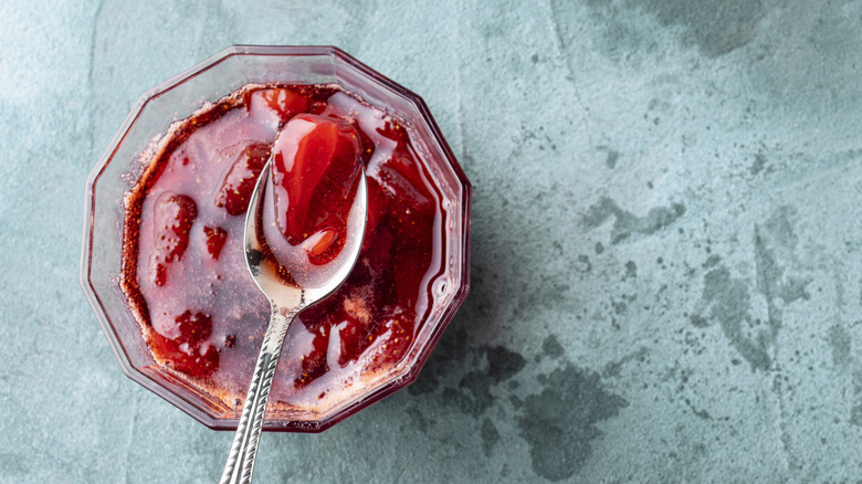 Warm caramel sauce is especially indulgent, creating a melty, gooey layer that blends seamlessly with the froyo's cool, creamy base. And, it will shine with just about any froyo flavor, offering a subtle sweetness that won't overpower or clash with fruity, nutty, or chocolatey notes. Similarly, there are a whole host of other toppings that'll fit in seamlessly alongside it. Try pairing caramel sauce with crushed nuts, cookie pieces, pretzels, or sliced bananas. To balance out the sweetness slightly, you can always go for a salted caramel sauce here. With the simple addition of the salt, you'll find that each spoonful has an extra depth to it, and won't come across as overwhelmingly sweet.