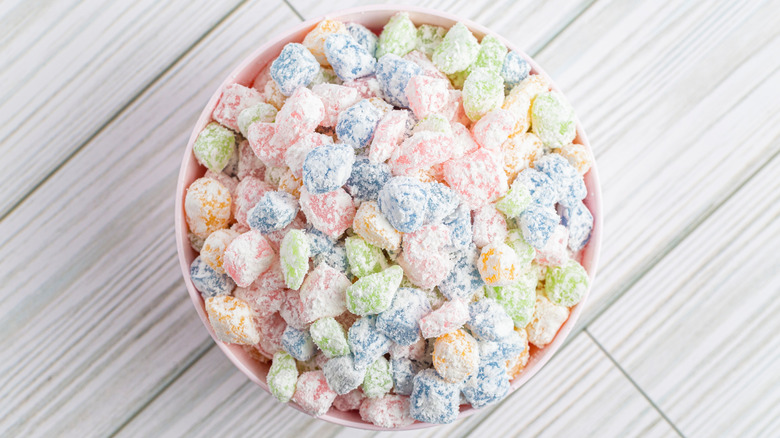 Mochi is a traditional Japanese dessert, made with sweetened glutinous rice flour. These bite-sized rice cake pieces have a distinctly soft, gummy texture that's unlike anything else, making them a fun addition to frozen yogurt. Mochi often comes in small, bun-shaped pieces, with a filling such as sweetened red bean paste, chocolate ganache, or ice cream. However, when it comes to froyo toppings, mochi tends to be in the form of smaller, unfilled morsels, similar to the boba pearls you'd find in bubble tea. This chewy treat comes in a rainbow of colors and flavors, such as strawberry, green tea, or coconut, so you can use them to craft a bowlful that both looks and tastes amazing.