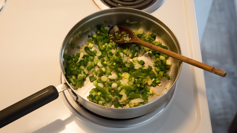 - Add the scallions and saute an additional 2-3 minutes until soft. Remove the pan from the heat.
