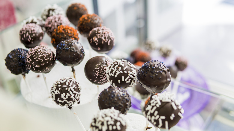 Cakes are a delight, but putting a sphere of cake on a stick and dipping it in chocolate gives you a dessert that's both clever and portable without risking a mess — bonus points if you make your entire cake pop edible by using a pretzel stick! For an adults-only version, choose your favorite booze to infuse into the cake pops. Making a liquor-laden cake pop is fairly simple, and there are certainly plenty of popular liqueurs to choose from that will pair well with different cake pop recipes. Between Baileys Irish cream, Kahlúa coffee liqueur, and your favorite style of bourbon, the possibilities are potent and plentiful.
