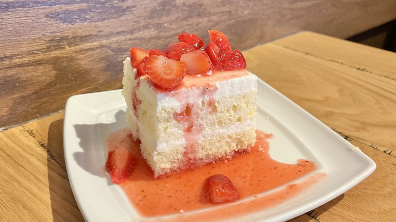 The strawberry cream cake seems like a fantastic summer dessert when you don't want to be bogged down by a dense treat. The cake's fluffy texture, paired with the velvety sweet cream and colorful sauce, made a fun blend that helped it rank just above the tiramisu, which is particularly good news if you don't want a coffee-based dessert.