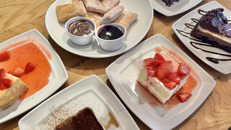 Olive Garden may be well-known for its pasta, soup, and salad combinations, but I wanted to get a feel for the brand's desserts. I used to work at the establishment many years ago — first as a host, then a server — so it's always a bit jolting to visit as a paying patron to see how much has changed. To familiarize myself with the latest prospects, I went on a mission to try all the desserts to see how they fared. With only six dessert options on the menu, the flavor profiles seemed strawberry or chocolate-forward, with the donuts and tiramisu as outliers.