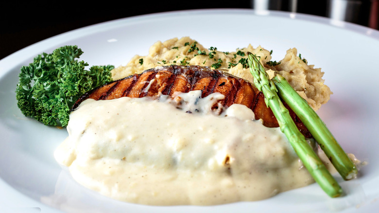 But rather than plain mashed, whip in a touch of Asian flair into your meal in the form of wasabi. Wasabi has a rich Japanese history dating back centuries as both a medicinal plant and a preservative used to prevent fish from spoiling. In modern times, it's used in Japanese food to enhance flavors and give them a bit of a kick. For our purposes, the slightly pungent flavor of wasabi mashed potatoes cuts through the creamy potatoes' richness, as well as elevates the tuna steak's umami taste.