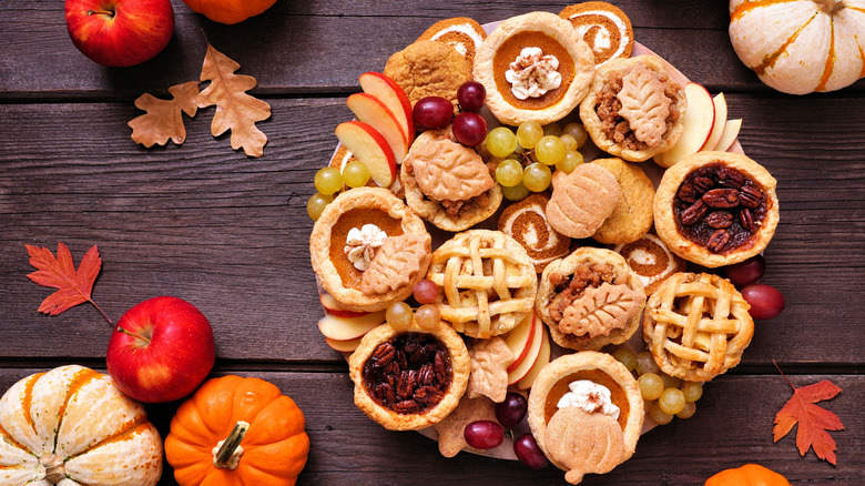 Evan Inada explains that desserts can also be a way to showcase your charcuterie skills. "'Charcuterie' technically requires cured meats, but you can borrow its presentation style to showcase sweet treats," he says. For a fall-themed wedding, for example, consider busting out the mini apple pies, pumpkin rolls, and sliced cookies paired with fall decor, like pumpkins and leaves. That way, your guests won't have to eat a whole slice of wedding cake; they can select the desserts that they want. Moreover, you can also make a charcuterie board experiential, like one for a late-night s'mores session or a midnight snack with french fries and sliders.