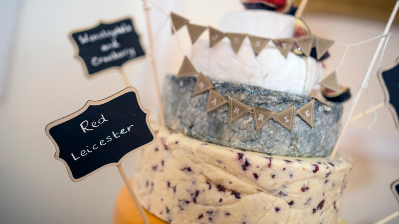While you might love a stinky blue cheese, not all of your wedding guests will. The key to making an approachable charcuterie board is to focus on approachable components — mainly when it comes to meats and cheeses. As far as proteins, Evan Inada recommends using "versatile and well-loved" options" like Italian dry salami, sopressata, Genoa, and prosciutto. If you buy sticks of cured meat, you can easily slice them up thin and serve them on your board for easy eating. As far as cheeses, Inada suggests Brie, Gouda, and mild cheddar. They're cheeses that are hard not to love.