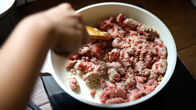 To make a flavorful ground beef mixture, first saute diced onion and garlic in a glug of olive oil. Once the onion has softened, add the ground beef and cook until browned. Season with salt, pepper, and fresh herbs such as cilantro or parsley, then pour in some jarred pasta sauce or canned tomatoes. Let the meaty sauce simmer for a few minutes before adding freshly boiled and drained angel hair pasta and simmering briefly once again. Now, your ground beef pasta is ready to serve and garnish as you please.