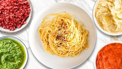 The ideal sauce for angel hair pasta is one that's relatively light and thin in texture since you don't want to weigh down those delicate strands too much. But, this doesn't have to mean avoiding cream or cheese. Whilst the heaviness of a rich alfredo might not be the best fit for capellini, you can absolutely give this pasta a smooth, creamy feel by whipping up a simple, angel hair-friendly sauce.