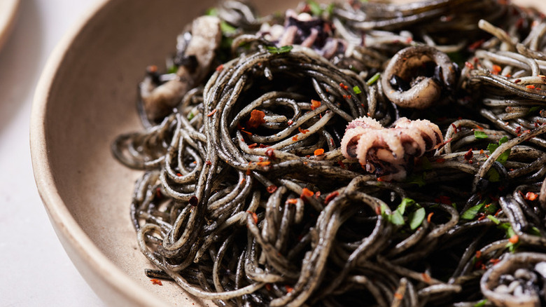To finish everything off, top your cuttlefish ink pasta with the reserved tentacles, fresh parsley, and sprinkle of red pepper flakes. The result is an undeniably sophisticated dish that'll make you feel like you're dining at a fancy restaurant in the Med.