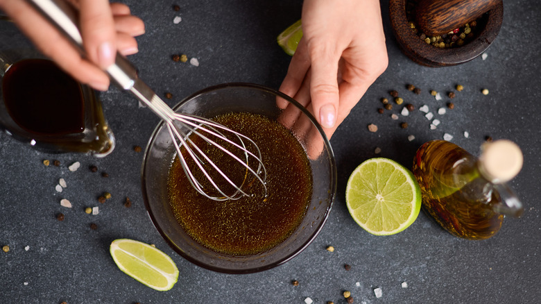 To keep things quick and simple, choose your favorite store-bought pesto, or if you have the fresh ingredients to hand, whip one up yourself. You'll need garlic, pine nuts, lemon, basil, olive oil, and salt. A few teaspoons of capers can also be thrown in for extra briny tang. Just blitz the ingredients together in a food processor until smooth, and the sauce is ready to add to your pasta.