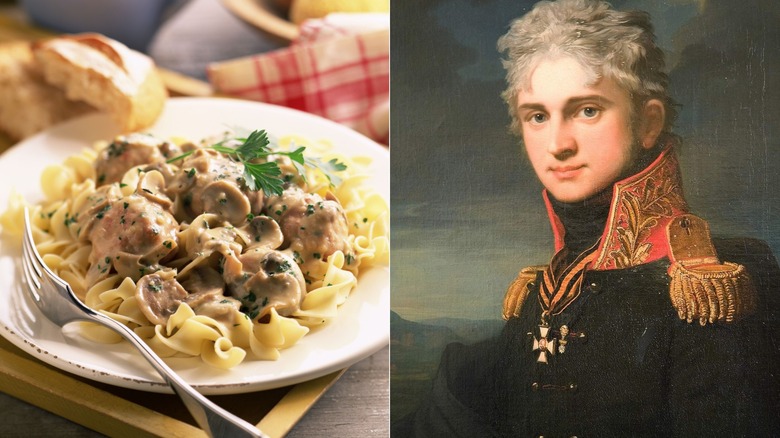 Another contender is the similarly named Grigory Alexandrovich Stroganov. That story says that the dish was created as something that would be easy for him to eat, but there's a third player here, too: Pavel Alexandrovich Stroganov (pictured). He gets a minor mention in summaries of Russian history as one of the 18th and 19th-century aristocrats who spoke up in favor of giving the tsar unlimited authority, and once you learn that the family really came to power alongside Ivan the Terrible, that kind of makes sense. The claim here is that the French-born member of the Russian noble family was responsible for combining the two cuisines into the dish that still bears his name — or, at least, his family's name.