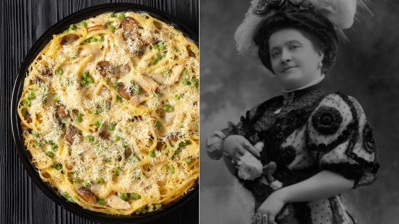 If you were to close your eyes and imagine the most famous opera singer of the late 19th and early 20th centuries, the mental image you conjure is precisely what Luisa Tetrazzini was. Classically trained since the age of 10, she was touring the world by the time she was 19, and she was so wildly popular that rival singers lauded her voice, and her recordings are still unrivaled. She first performed in the U.S. in 1905, and here's where there's a bit of a debate. Some say the dish that was named after her was created at the McAlpin Hotel in New York, while others say it was created at the city's Knickerbocker Hotel. Still, others say it was actually created in San Francisco after she performed in a public Christmas Eve concert that saw around 300,000 people gather to hear her.