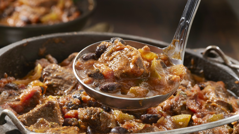 Chef Taus is right to recommend cooking the skirt steak separately before adding it to the chili at the end. After all, skirt steak cooks quickly, and an overcooked skirt steak (or any steak, really) can ruin a dish, becoming tough and chewy — and no one wants that. So, it's best to err on the side of caution and allow your meat to rest before incorporating it into the finished dish.