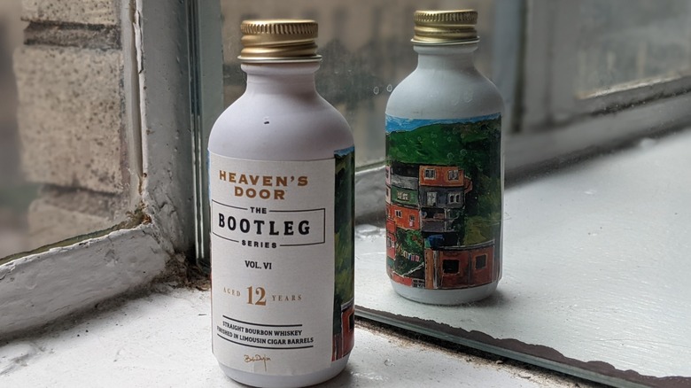 The main series of Heaven's Door, Bob Dylan's whiskey company, are release in different labels. Divided into a vanilla-spiced bourbon called Revival, a double-barreled bourbon called Revelation, and a straight rye known as Refuge, the folk singer's whiskey brand also annually releases small-batch bottles. This is the Bootleg Series, and the labels feature paintings by the man himself. This time around, it's "Favela Villa Candido," a painting from Dylan's 2015 Brazil Series.