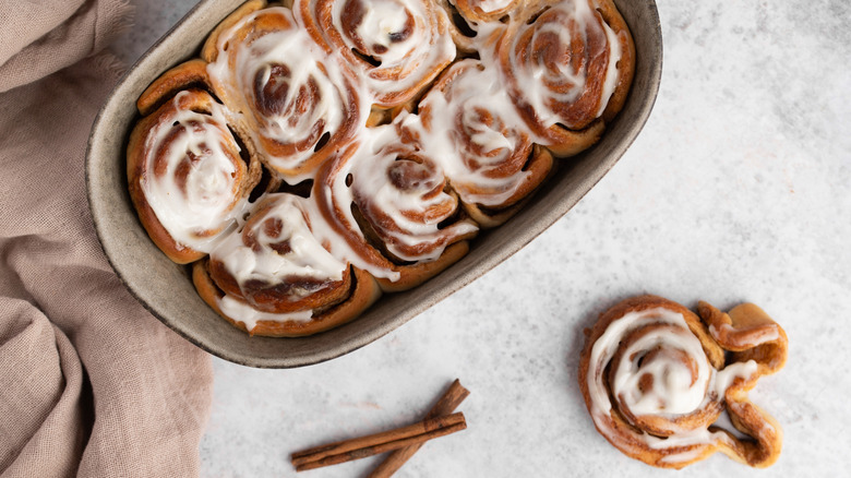 If you're showing up to brunch with cinnamon rolls, we can safely say you've won the brunch game. It's rare to find someone who doesn't love the sweet, indulgent, and decadent character of this classic. Cinnamon rolls are also great whether they're enjoyed freshly baked or if you want to munch down them long after baking, making them ideal for packing and taking them anywhere you're going. And if you're not confident making them yourself, it's super easy to track down very good versions in bakeries and stores. After all, why not leave it to the professionals to do what they do best?