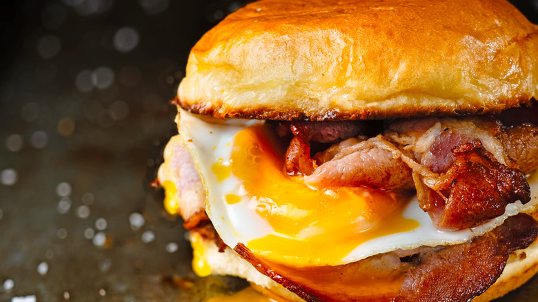 There's little that says brunch like eggs and bacon. They are a breakfast staple for a reason. The combination makes you feel great after a night out, but you can simply enjoy it because you want a delicious and fatty meal for no particular reason. While a fry-up can be a beautiful thing when it's just cooked, it's not the best thing to travel with or take somewhere as it can be quite messy due to fatty juices and runny yolks. That's why an egg and bacon sandwich is the way to go if you want eat this popular meal somewhere other than your kitchen.