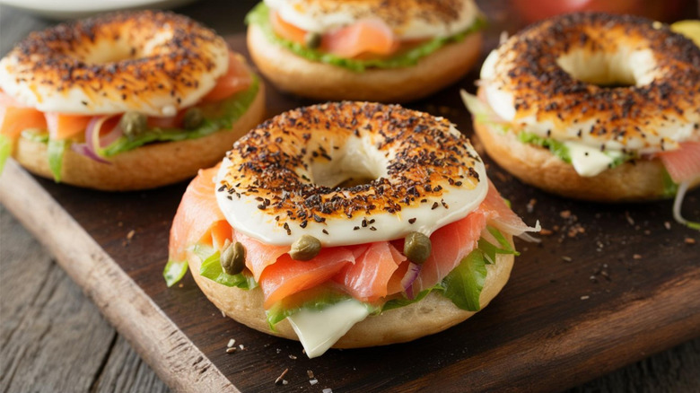 Bagels are a winning brunch dish any time of the year, and you can't go wrong with a smoked salmon bagel. Smoked salmon is often considered to be a finer food, so choosing to make smoked salmon bagels can make brunch feel a little more elevated. You can get the bagels at your favorite bagel joint, but they are something that you can try recreating at home.