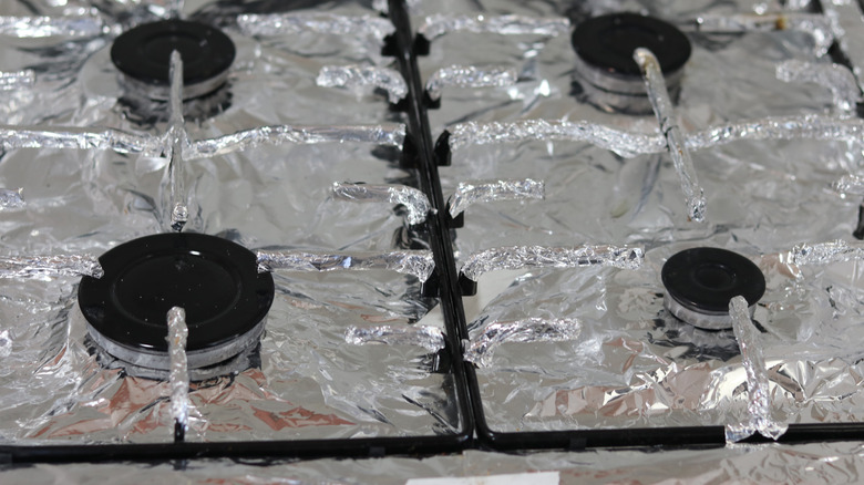 Using foil to line drip pans for easy cleanup