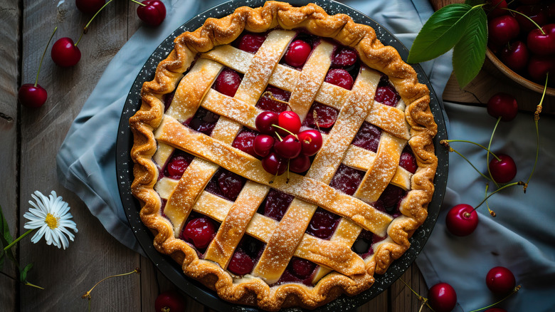 Fran Kolenik underscores the importance of using a high-quality crust: "Of course, you must start with an amazing crust," she says. Kolenik uses her mother's pie crust recipe. Unfortunately, that's a recipe you're probably not going to get your hands on, but maybe you can ask your own mom, dad, grandma, or grandpa for their favorite pie crust recipe or just find one online that makes an especially delicious crust. Once you find a solid cherry pie crust recipe, you'll never go back to those sub-par store-bought varieties.