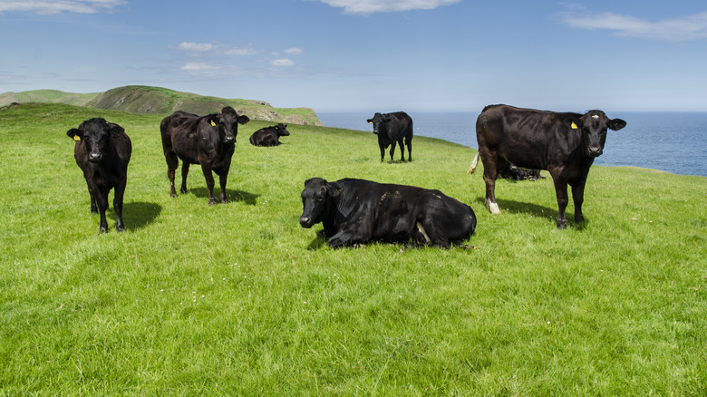 Speaking of richness, there's a clear difference between the taste of Angus and Hereford beef. Angus is extremely tender and flavorful — some go as far as to describe it as buttery. In contrast, Hereford is characteristically mild with less tenderness and a more stereotypical "beefy" flavor. Strictly speaking, the two are almost on par in terms of quality, but Angus just nabs first place. As mentioned, this subtle (juicy) difference is better for dishes like steaks and burgers. It's also worth noting that Angus beef rates highly when graded by USDA quality standards. However, if you're looking for something more versatile, the grassy nuttiness of Hereford beef's flavor is easier to blend with other ingredients than Angus' intensely rich punch. It's more of a blank canvas, perfect for testing underrated seasonings. It depends on what you're after.
