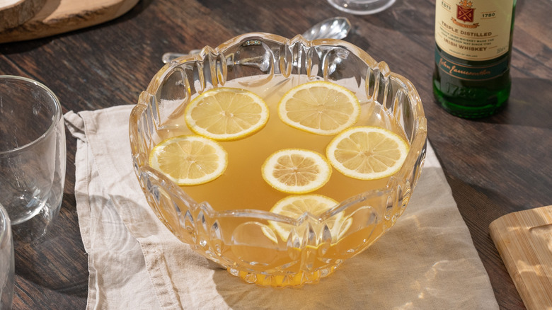 Punch is a wonderful drink to offer at a party; it is easy to assemble and perfect for serving a crowd. However, preparing for a party can be a lot of work, and the ideal recipes are those that can be prepared in advance. While this recipe for Gaelic punch takes only 15 minutes to prepare, it can also be partly assembled beforehand, making it even easier to finish off just before serving. Simply follow the recipe up to step 5, before the whiskey is added, and you can allow the lemon, sugar, and spice mixture to cool completely. This can be stored in the fridge for 2 to 3 days and simply needs to be warmed through again before adding the Irish whiskey and the hot water.