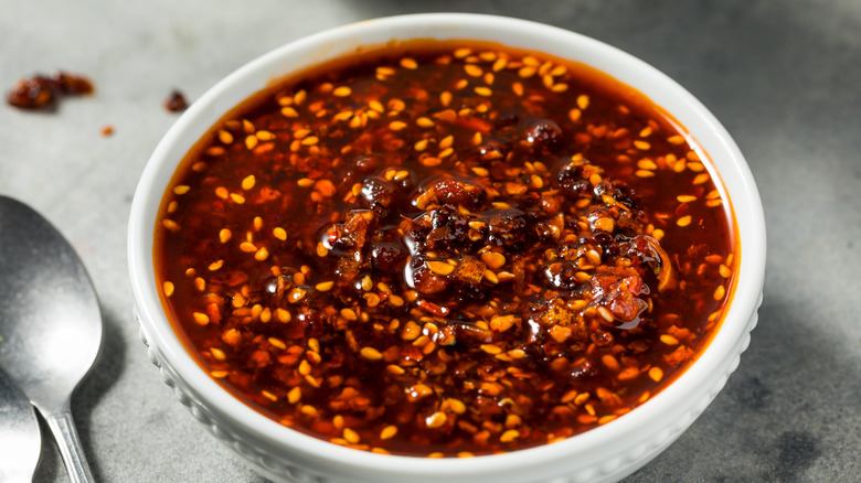 Chili crisp is a condiment with origins in Chinese cuisine and is traditionally made with dried chilies, garlic, shallots, oil, onions, dried shrimp, mushrooms, salt, and pepper, among many other additions. It's become popular in recent times because it has everything cooks want in a spice blend: Aromatics, a little bit of oil, elements of crunch, some heat, and a dash of umami flavor. Whether cooks are using a homemade blend or a store-brand mix, it has the potential to touch all tastebuds with its flavor blend.