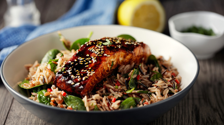 Chili crisp is also a popular choice for marinades and reverse marinades. Marinading salmon in chili crisp before cooking infuses the flavors of chilies, garlic, salt, and other ingredients directly into the fish — which can be a bonus for those who like flavor, but may not enjoy the natural taste of salmon. Brushing on a coating of chili crisp on a freshly cooked filet for a reverse marinade instantly adds strong aromatics and flavor. It can also spice up the appearance of a salmon filet, taking a simple salt and pepper seasoned piece of fish and turning it into a colorful, Instagram-worthy entree.