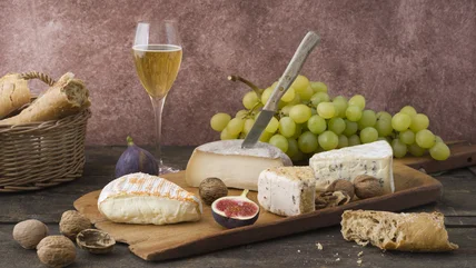 Sometimes known as a stinky cheese, Camembert is ideal when served along other slightly pungent ingredients, like cornichons or a small bowl of whole grain mustard, where the acidity of those foods can help cut through the distinct richness of the cheese. In contrast, serve a sweeter element alongside the cheese, pickles, and Prosecco, like fig jam or honeycomb, for a bit of added texture as well as sweetness. Fresh berries with a bit of tartness, like blackberries or raspberries, are a perfect complement to the funky cheese and bright Prosecco, along with a square of semi-bitter dark chocolate to offset other sweet items. Along with Prosecco, camembert also pairs well with chardonnay.