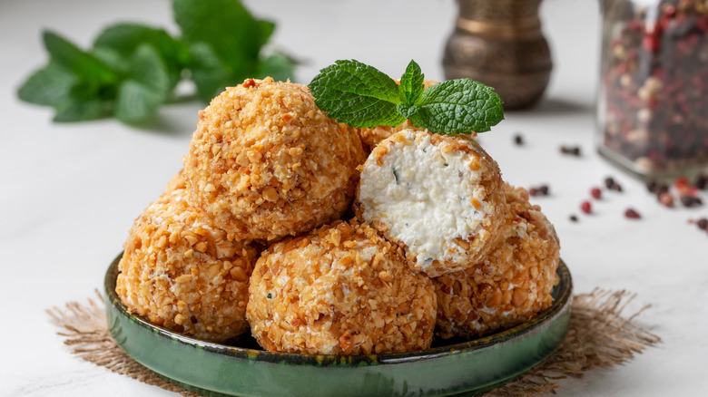 Goat cheese truffles with pistachio crust