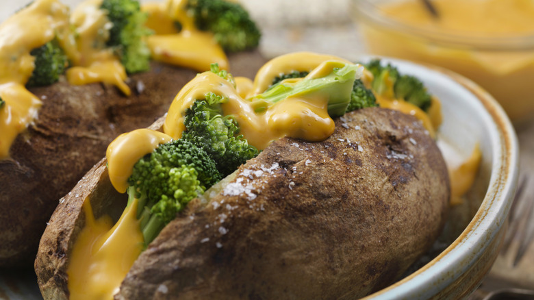 American cheese may be an ultra-processed, but its composition and additives are what make a microwave cheese sauce possible. Made of a blend of different meltable cheeses, American cheese also contains the emulsifier sodium citrate. This emulsifier is the secret ingredient for meltability, preventing cheese's oils and proteins from separating during the heating process. It's no wonder that American cheese made it on our list of the 14 best cheeses for your grilled cheese sandwich. Half-and-half provides more dairy richness as well as the liquid volume needed to turn American cheese into a sauce. To make the sauce requires little more than tearing a couple of Kraft American cheese singles into quarters, placing them in a microwavable bowl with 1-2 tablespoons of half-and-half, and nuking the mixture for one minute, pausing to give it a stir halfway through.