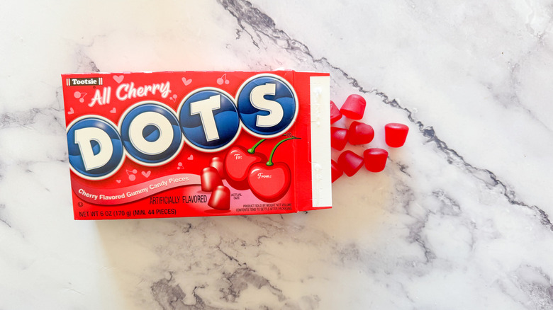 Dots are less of a "grandma candy" than the Great Value cherry drops that I sampled — but not by much. This Valentine's Day iteration of the candy contains just cherry candies, which is great, because who needs strawberry and watermelon when you have the best flavor of them all in one box?