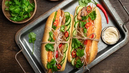Bánh mì sandwiches are one of the most famous Vietnamese dishes and a prime example of fusion cuisine; one of the few boons of French colonialism, bánh mì was the result of incorporating Vietnamese pickled veggies and seasoned meats into a French baguette slathered with mayonnaise. Bánh mì now encompasses countless meat fillings, and you can extend its versatility to another practice of culinary fusion. Here to tell us how is chef Kevin Tien, a Best Chef Mid-Atlantic finalist for his work at the critically-acclaimed Moon Rabbit and a five-time James Beard semifinalist that's featured on The New York Times's "America's Best Restaurants" of 2024.