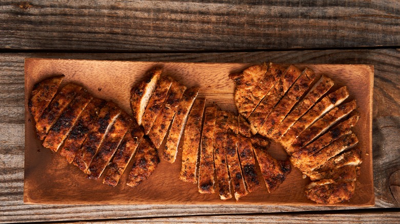 That said, chicken's malleable flavor means it's equally versatile and flexible when it comes to preparation, as well. Whether roasted, grilled, or sauteed, each technique brings a unique texture and flavor profile to the final product. Additionally, using bone-in chicken or dark meat cuts can add even more depth in flavor, since the bones impart their own flavors that are often used to render stocks. For a more indulgent option, try marinating your chicken in buttermilk and spices prior to cooking. Buttermilk is known to tenderize thicker cuts like chicken breast, but it also adds its tangy, signature taste, which pairs perfectly with a cream-based pasta sauce.