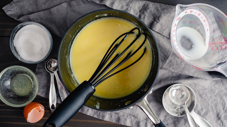 To avoid a broken Cajun pasta sauce, chef Sujeevan Velummylum says to first figure out the type of cream base you'd like to employ. "There are so many types of cream to use," he explains. "Some do a butter and flour roux to thicken their sauce with milk and cream, but you can also skip that and just use a 35% cream." The key here is to create an emulsion of the fat and liquid. Using a heavy, full-fat cream adds the necessary fat needed to keep the sauce from separating. Velummylum notes that a few tablespoons of the resulting béchamel sauce mixed with a vegetable stock is another option for a stable foundation that aids in holding together the sauce, adding that it's "less likely to break the final product than just cream alone."