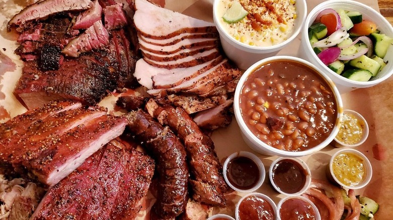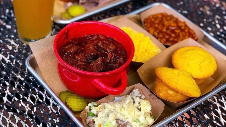 What David Eckert loves the most about this restaurant is that it "pushes the barbecue envelope by offering wings, tacos, burritos, and bowls, along with some really delicious sides." Indeed, the menu is extensive and includes breakfast classics like hashbrowns and pancakes; meat plates and sandwiches spanning pulled pork, chicken thighs, brisket, and burnt ends; ribs served with bread and pickles; and smoked jumbo wings.