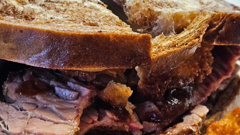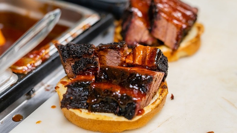 What sets the meats apart from other places is that they're exclusively smoked with Missouri white oak — which is also used for aging bourbon — not to mention that all the house's seasonings, sauces, and rubs are gluten-free. Though the menu presents various tasty options, two dishes particularly stand out: the KC-classic beef burnt ends and the Z-Man, a sandwich that includes smoked provolone cheese, smoked brisket, and onion rings. Per Dave Eckert, the latter "alone is worth the trip, and they have the best fries in the city, bar none!"
