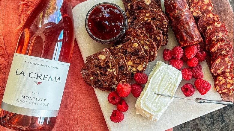 La Crema Monterey County Rosé is 100% Certified Sustainable pinot noir from various vineyard lots throughout the county. The ballet slipper pink-colored wine includes a mix of Dijon and Swiss clones. The varying pinot noir clones give the wines their distinct flavors, including ripe raspberry, a touch of spice, rose petals, and red cherries. The palate is smooth, balanced, and well-rounded, showing additional flavors of mandarin, watermelon, and strawberry with a mineral note of crushed stone on the finish.