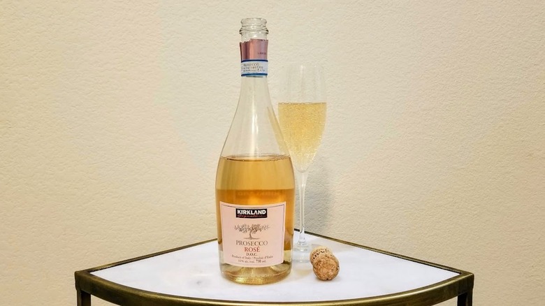 Prosecco rosé must contain 85% of the region's signature variety, glera, with the remaining 15% typically consisting of pinot noir. The wines must be vintage-dated, with 85% of the fruit in the bottle coming from the noted vintage. Crafted using the Charmat or tank method which creates the bubbles in large stainless steel tanks, the wine must age in the tank for a minimum of 60 days, adding texture to the palate. Kirkland Signature's selection is bottled Extra Dry with 12-17 grams of residual sugar per liter, a touch sweeter than a Brut sparkling wine, which contains less than 12 grams per liter. The Costco brand's wine has natural acidity that provides balance to the sweetness of the candied fruit flavors.