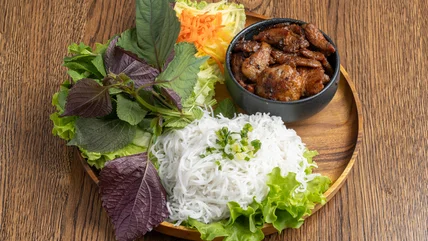 After you've marinated your ground pork and formed meatballs, which are usually a mix of pork, garlic, sugar, nuoc cham, salt, pepper, and scallions, preheat your grill and arrange the coals so that they create an indirect heat – in other words, pile all of the coals on one side of the grill. You can either cook your bun cha directly on the grill, on the opposite side of where you placed the coals, or you can get yourself a metal grilling basket from Amazon for $23.99 and cook them in that, flipping them around constantly until they're cooked fully through. If you're not going the grill basket route, that time on the grill is when to chop your herbs and prepare your sauce, just make sure you have a bottle of nuoc cham in your pantry first.