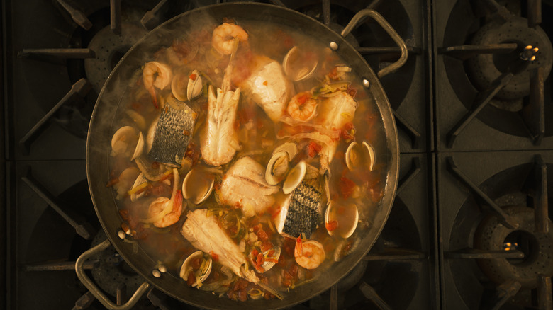 Both types of fish stew encourage the use of toasted bread as a side, but cacciucco in particular allows for the substitution of fish ingredients to adapt to what's available. For example, while it typically calls for squid and octopus, you can use whatever combination of fish you might find on sale at the fish counter. Just make sure you choose many different types of fish to give the stew more depth of flavor. The more varieties, the merrier.