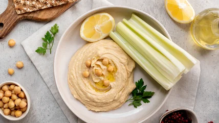 If neither of these options are up your alley, consider making a personalized batch of hummus by customizing it to your tastes with seasonings, spices, and herbs. All you need are chickpeas, tahini, and a splash of lemon juice (along with a high-powered blender) to make a satisfying protein-rich dip. Amplify your homemade hummus by adding an ice cube to the processor when you whizz it up. The air bubbles inside the ice will spread through the chickpeas as you blend them, resulting in a creamier consistency that's super-smooth and wonderfully luscious.