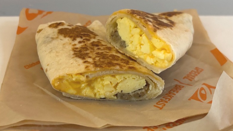 Indeed it was, and the seasoning on the sausage tied the whole wrap together. It added a firm textural component that the bacon Crunchwrap lacked, making it feel like a more cohesive meal, and the hash brown's crunch only added to the textural interest of this breakfast item. It's easy to taste every part of the Crunchwrap in a single bite; moreover, I was happy that there wasn't an overwhelming amount of eggs.