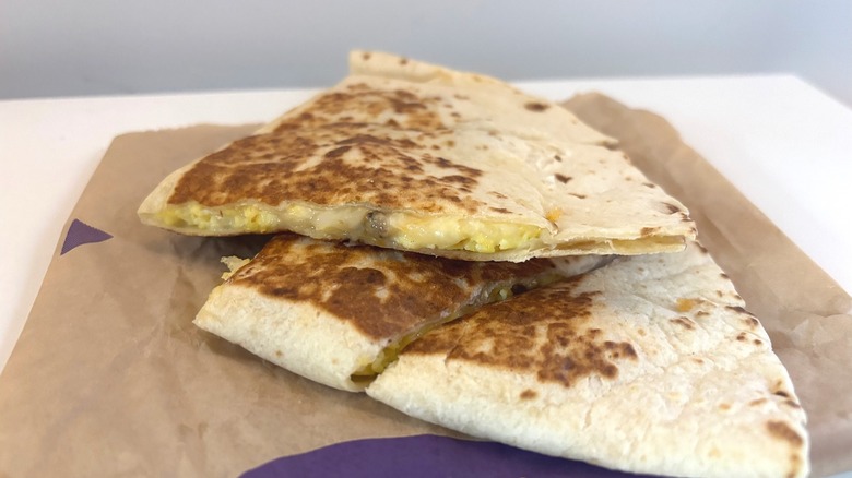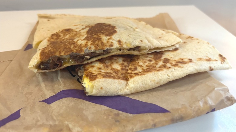 At the bottom of my list, you'll find all three of Taco Bell's Breakfast Quesadilla offerings. While none of the chain's meals floored me, I was particularly underwhelmed by the quesadillas, and the steak quesadilla was my least favorite of the three. Taco Bell's quesadillas are probably the least filling of its breakfast meal options, but I wouldn't call them scant — they just aren't as hearty as some other foods on the chain's menu.